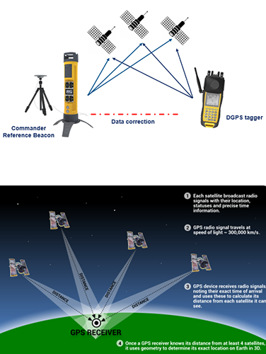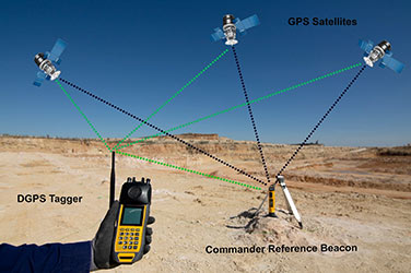 - Accuracy of DGPS is achieved by using a reference receiver (CE4 Commander) at a known surveyed location that broadcast correction data to the Tagger.