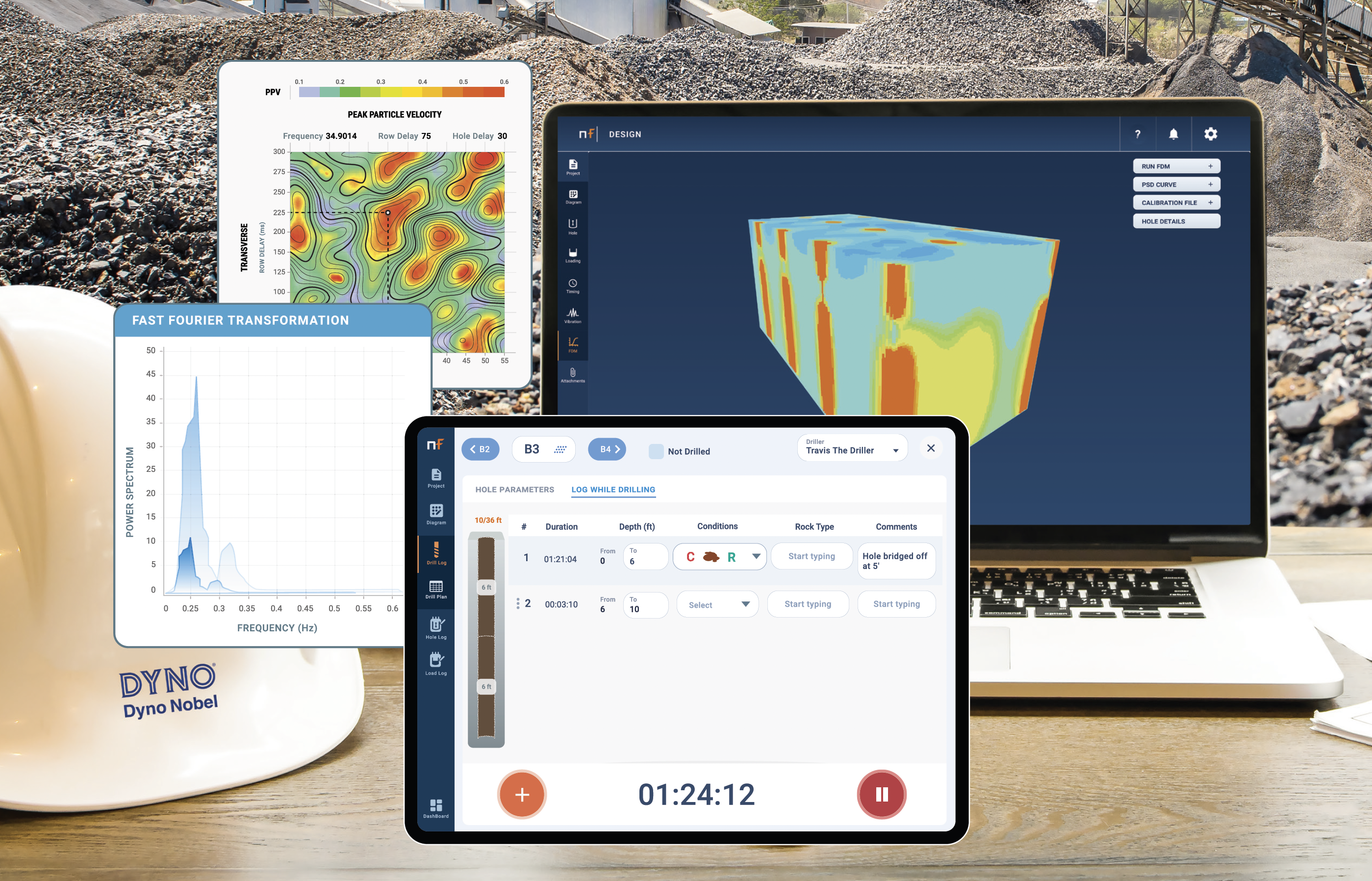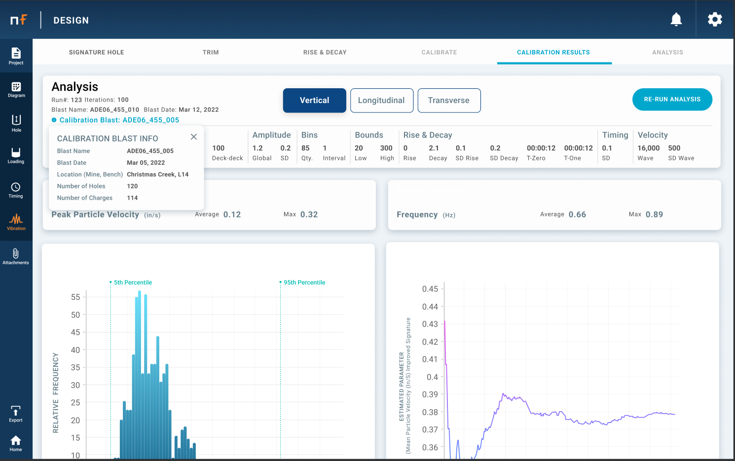 Dyno Nobel’s Vibration Timing Optimization is a signature waveform convolution engine that quickly helps identify blast timing pairs that help reduce vibration at a structure. Using traditional or travel time-based signature wave analysis, Vibration Timing Optimization can run thousands of scenarios in seconds to find the optimal timing for vibration mitigation. This tool pairs seamlessly with the Advanced Vibration Prediction tool in Nobel Fire.