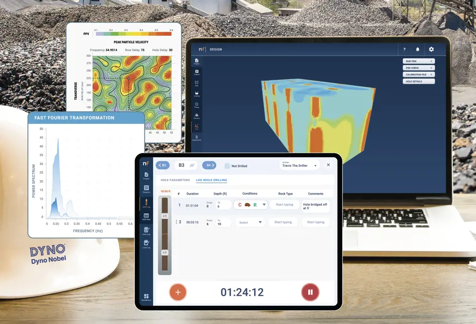 FDM is Dyno Nobel’s industry leading physics-based fragmentation model. Built with the end-user in mind, it’s an advanced modelling tool that anyone can use. Through an automated calibration process, the model can be calibrated using a single or series of blasts that have been measured, making the model extremely accurate for operations’ specific geology. Modelling future outcomes significantly reduces the operational impact of continuous improvement projects, including cost reduction, fines reduction, oversize reduction, and pattern expansions.
