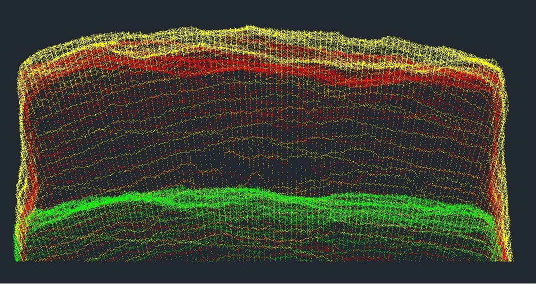 Project Description: The customer was interested in analyzing the difference in cut depth and scaling required between shots to track shot performance against blast changes made. We collected Quarryman 3D scan data of the stope pre-blast, post-blast, and post-scaling. Then Bethany analyzed the volumes and cut depths in Carlson AutoCAD. Additionally, we boretraked the holes in the stope to review drilling accuracy and its effects on the cut and scaling. Overall the customer came to the conclusion that they should adjust some drilling procedures to ensure the drilling was done in the proper angles, ensuring the best cut.